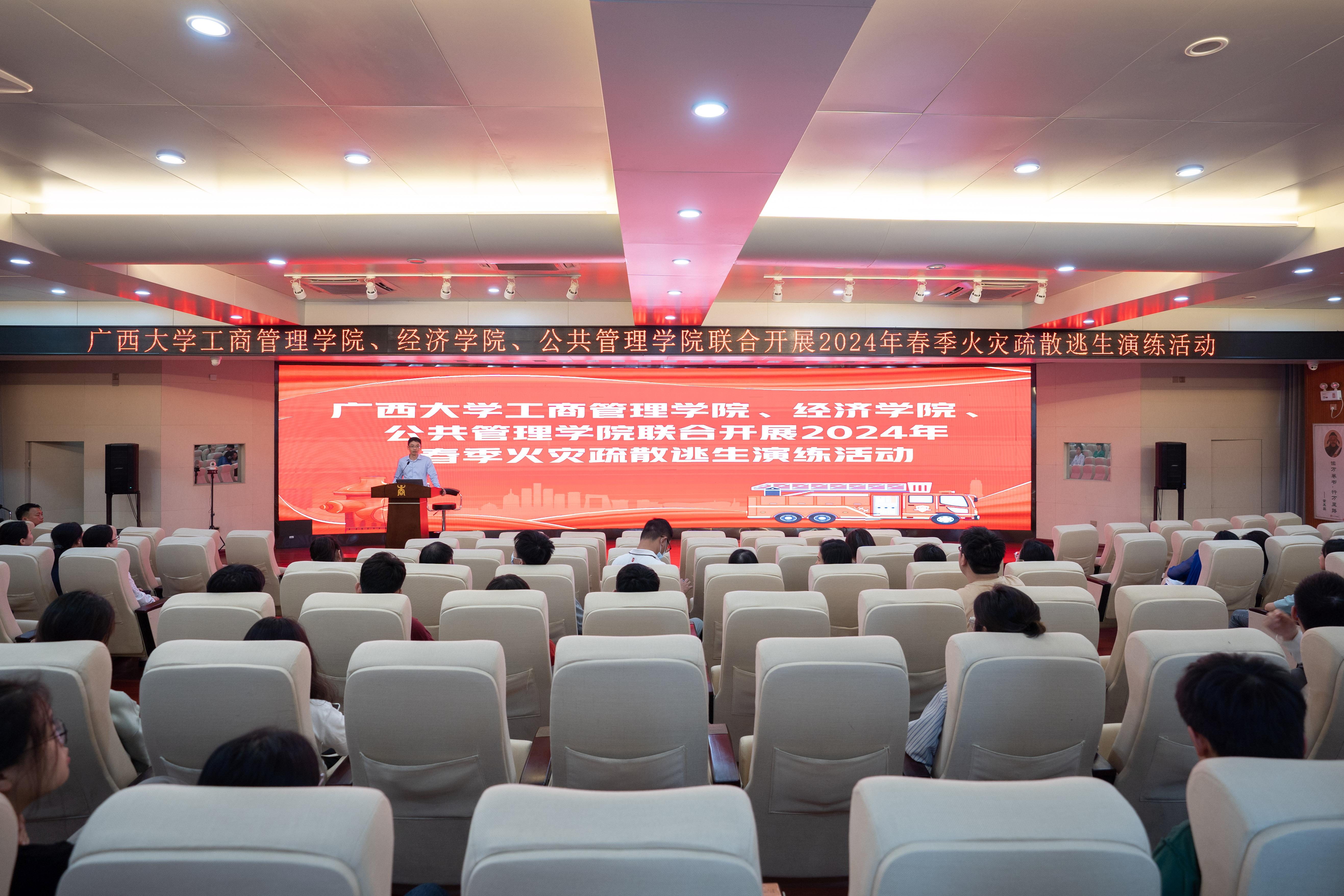 为切实提高广大师生员工的消防安全意识和自防自救能力,3月29日下午,bwin必赢国际中国官方网站与经济学院/中国-东盟金融合作学院、公共管理学院联合开展2024年春季消防安全培训及演练活动。学校保卫处消防安全管理岗负责人黄光电老师及工作人员来到现场指导工作,三院师生代表共170余人参加活动。bwin必赢国际中国官方网站党委副书记肖克宁主持活动。