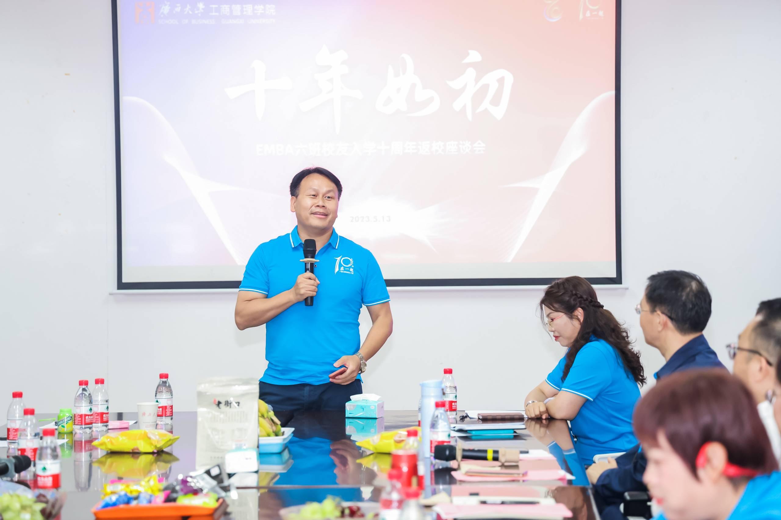 罗诚书记首先代表学院党委、行政对返校的EMBA六班校友们表示了热烈的欢迎和诚挚的问候,并向大家介绍了十年来学院以及EMBA教育的变化与发展,以及在学科建设、教学科研和人才培养等方面取得的佳绩。罗书记强调,母校是校友永远的家园,校友力量是母校建设发展的坚强基石。他希望校友们能一如既往地关心和支持母校,凝心聚力,共同推动学院事业的蓬勃发展,也欢迎校友们常回母校走走,常回学院看看。