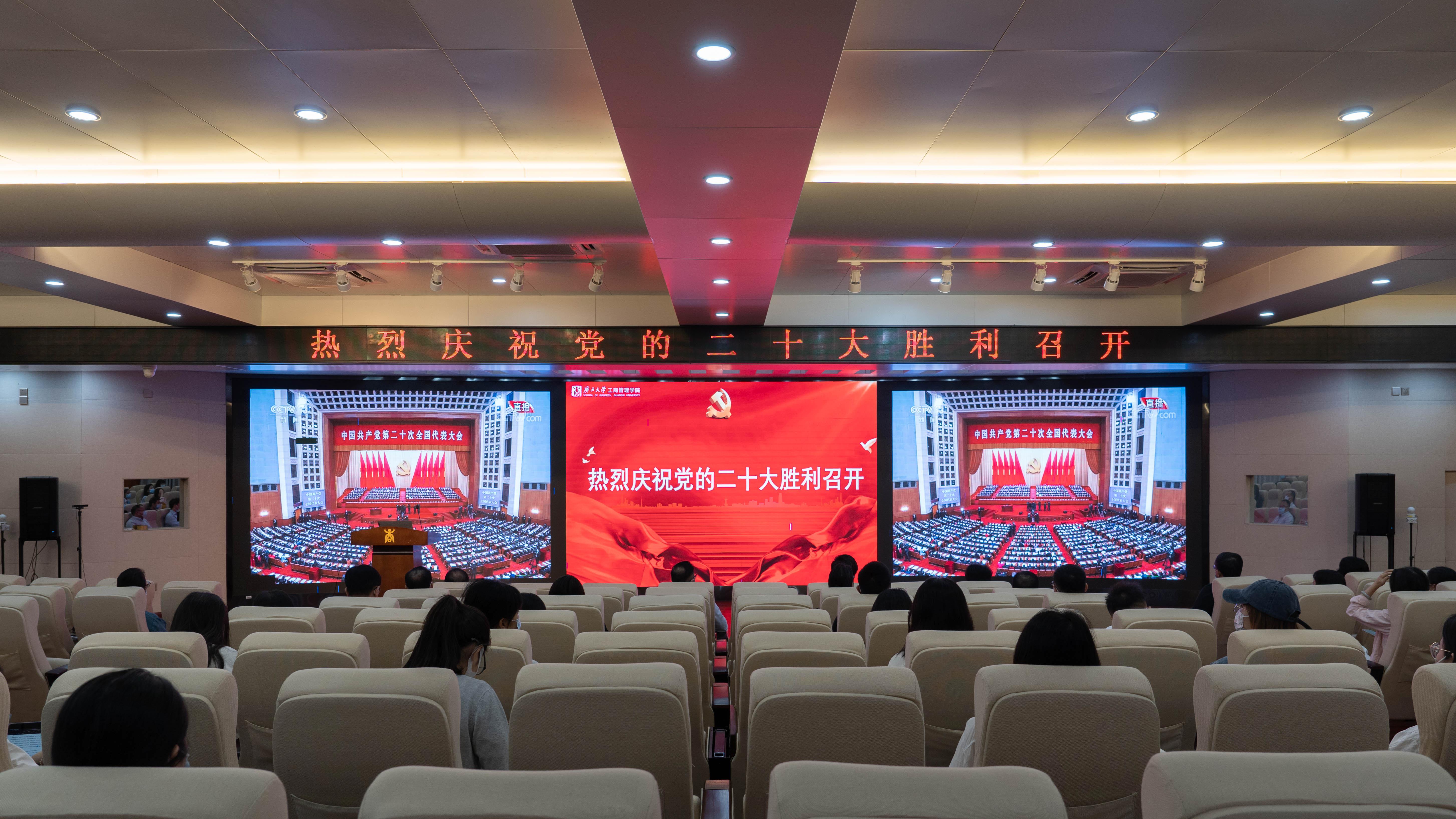 必赢官网党员干部、教师代表在128报告厅集中收看党的二十大开幕盛况