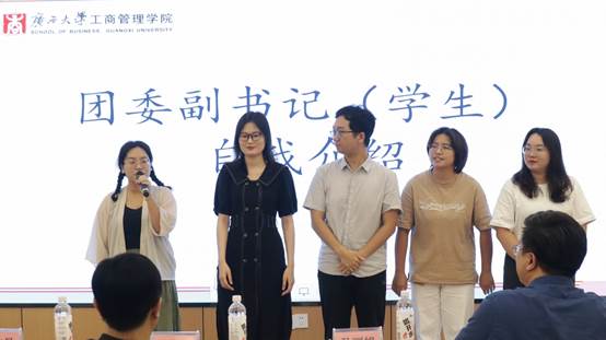 首先,研究生会主席团成员翟艳洁、唐子微、吕毅以及党建工作秘书处秘书长容楚楚和学生团委副书记曹羚彬进行自我介绍,并分别介绍了自己的分管部门。