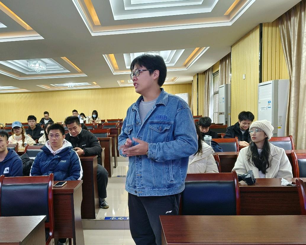 团委副书记、本科生第二党支部书记岑汉成老师表示,习近平总书记到广西视察,着眼党和国家事业战略全局给广西指方向、明路径,为广西奋力谱写中国式现代化篇章提出了行动纲领。作为高校辅导员、学生党支部书记,他要将这些政策思想完整、准确地传达给大学生,让他们能够立足专业,努力提升科研实践能力;结合广西发展需要,规划职业发展,争取毕业后留桂、兴桂,一步一个脚印把习近平总书记为广西擘画的宏伟蓝图变为美好现实。