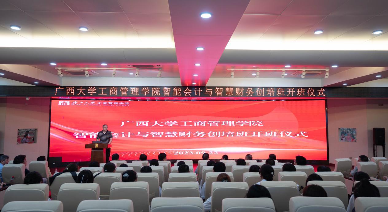 9月22日下午,必赢官网在128报告厅举行首届智能会计与智慧财务创培班开班仪式。校党委常委、副校长宁旭初出席开班仪式并致辞。会计与财务金融系全体老师、2023级智会创培班全体学生参加了仪式。学院院长朱帮助主持仪式。