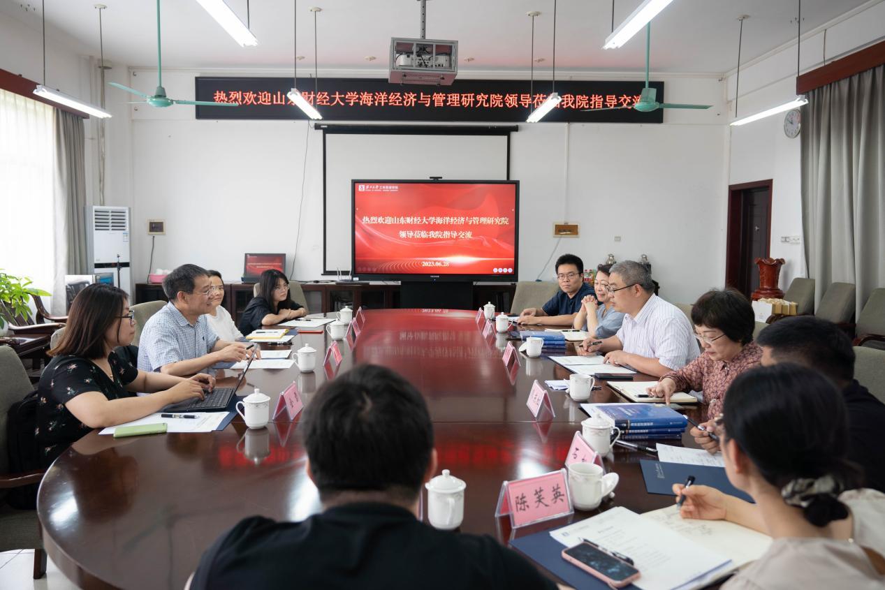 6月28日上午,山东财经大学海洋经济与管理研究院院长殷克东一行到必赢官网调研,就海洋经济发展新格局的构建、海洋经济与管理领域未来的发展等事宜进行调研交流。