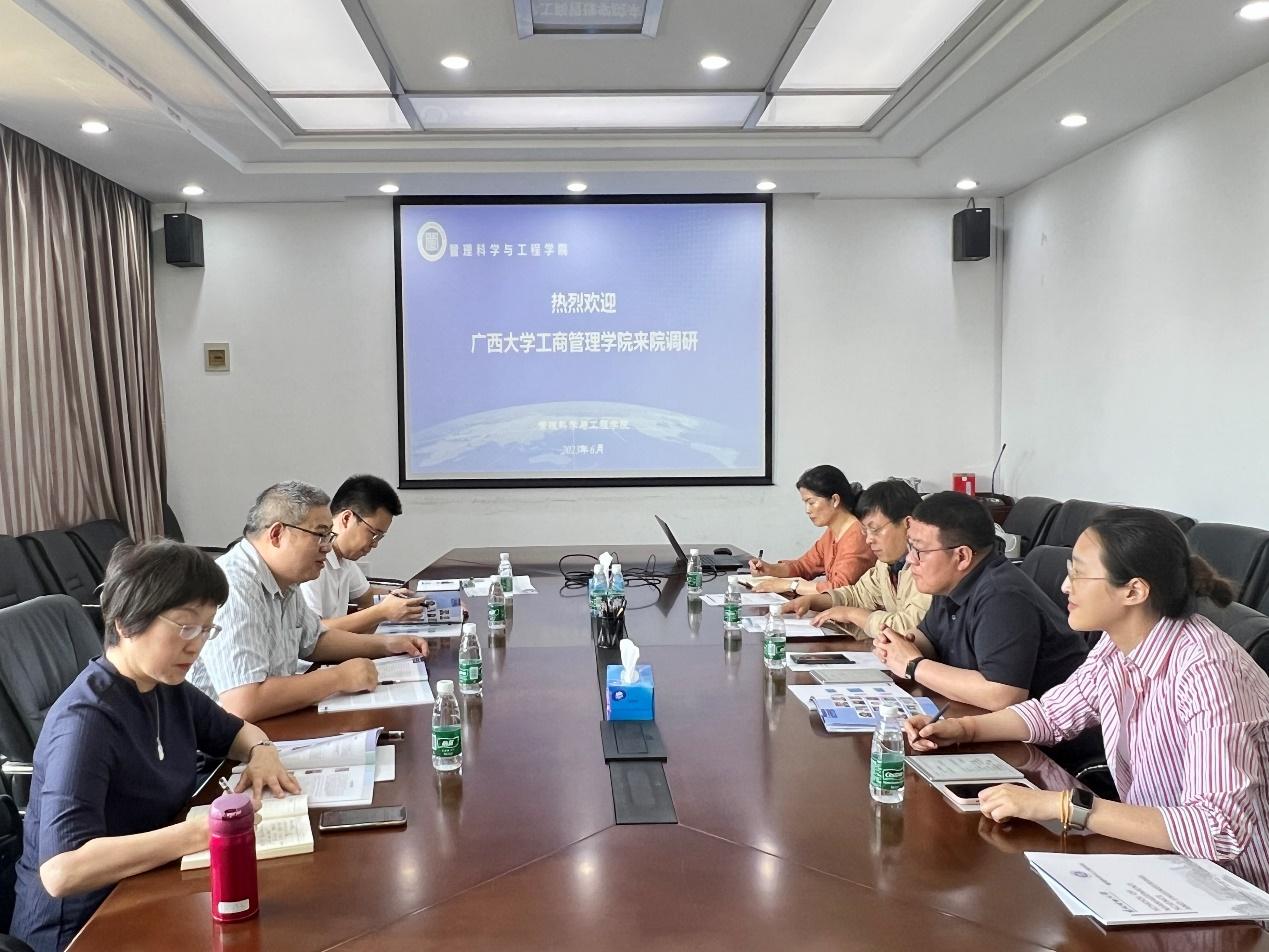 大连理工大学经济管理学院党委书记孙玉涛教授、原副院长宋金波教授,东北财经大学管理科学与工程学院院长刘子龙教授、副院长田甜教授、大数据管理与应用系主任高明教授、中国系统工程学会理事长杨晓光教授、中国科学院大学经济与管理学院汤铃教授等就人才培养、师资建设、大团队大项目大平台大成果建设、激励与考评制度、科学研究、国际化、实验室建设、中国“双法”青年工作委员2023年学术年会等进行了深入探讨与交流。