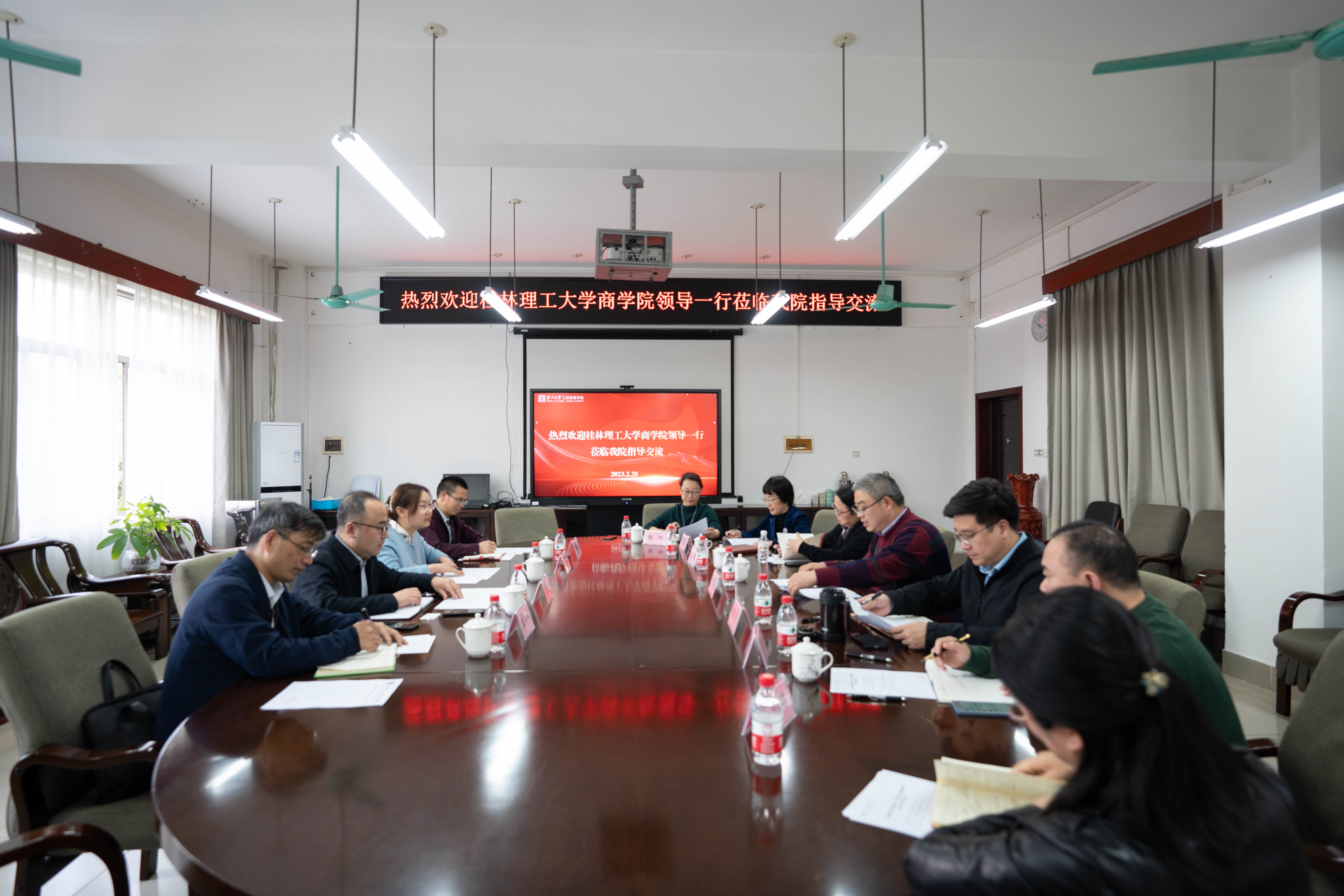 桂林理工大学商学院党委副书记沈菲菲,副院长王兴中、卢智增一同调研。必赢官网工会主席、研究生管理中心常务副主任叶映,党政办主任杨阳,企业管理系副主任彭娟参加了座谈会。