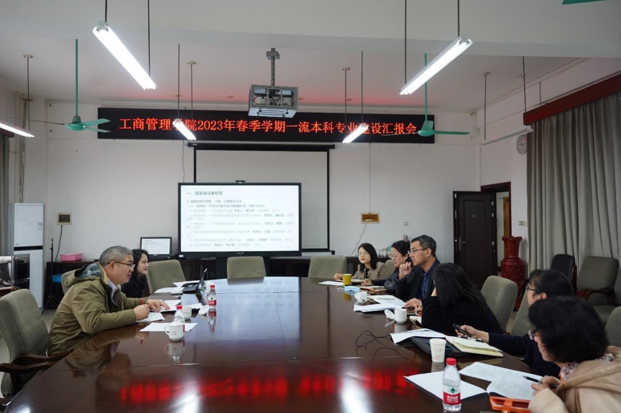 会上,会计学、工商管理和旅游管理3个国家级一流本科专业建设点负责人对标建设标准,重点从培养方案修订、师资队伍建设、标志性成果培育、建设经费预算等方面的规划举措进行了汇报。