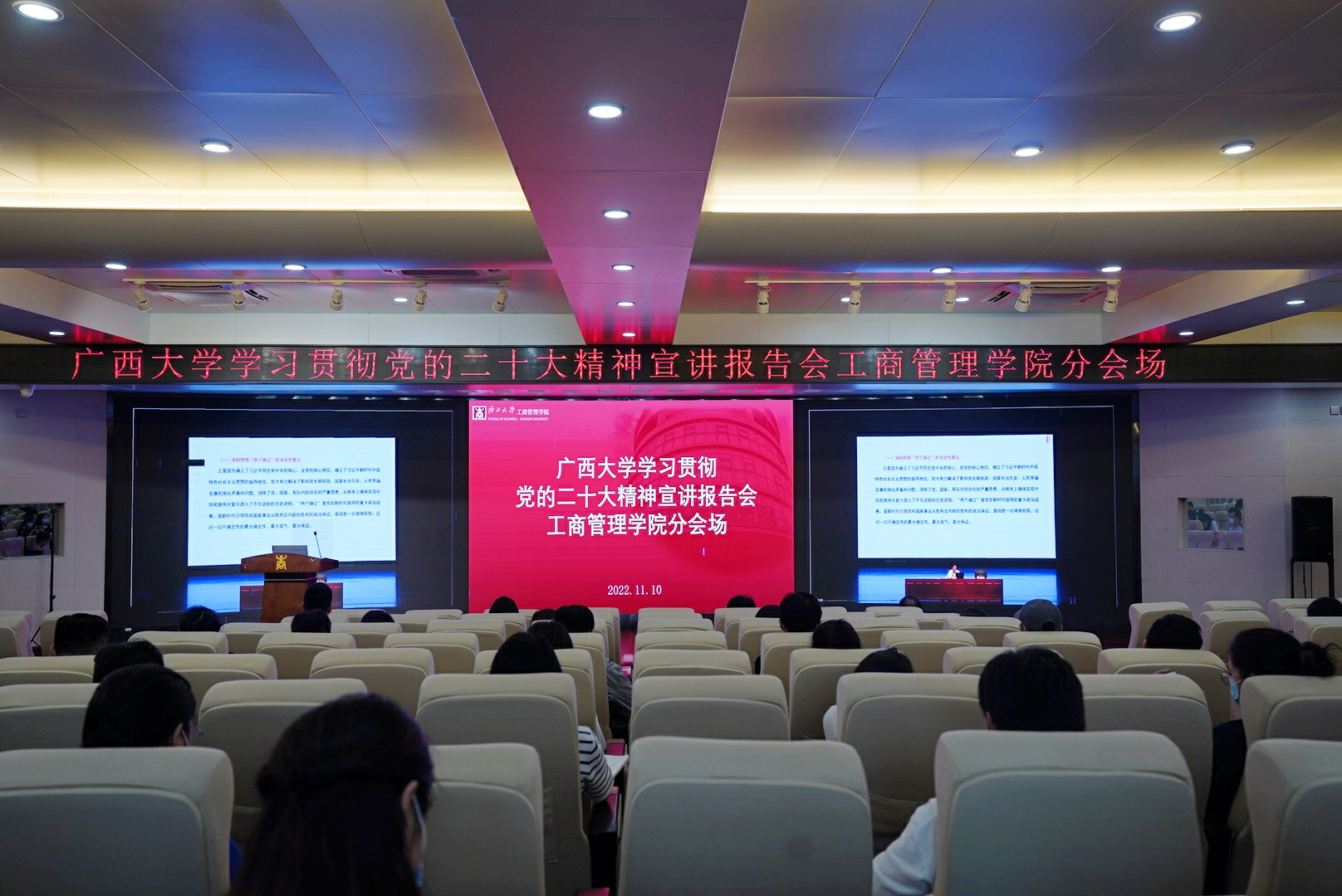 11月10日下午,学习贯彻党的二十大精神自治区宣讲团在我校宣讲,自治区宣讲团成员、自治区党校(广西行政学院)常务副校(院)长胡建华作了宣讲报告。宣讲报告会以线上线下相结合的形式召开,自治区政协副主席、校党委书记王乃学主持报告会。必赢官网在128报告厅设置分会场,教职工及各党支部代表在分会场观看报告会直播。