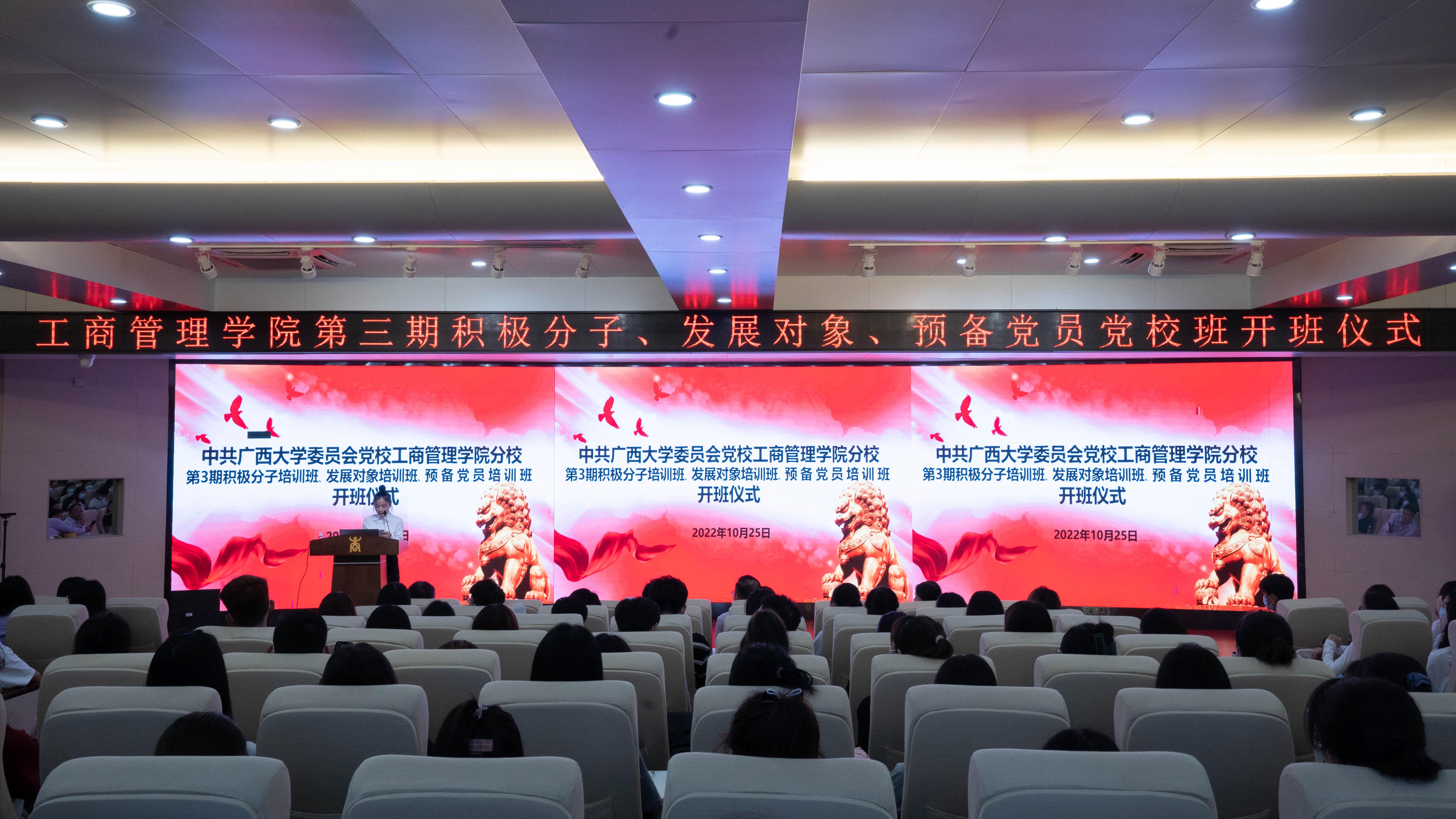 10月25日下午,中共bwin必赢国际中国官方网站委员会党校bwin必赢国际中国官方网站分党校第三期党校班开班仪式在学院128报告厅举行。学院党委书记罗诚、党委副书记黄晋出席开班仪式,团委副书记岑汉成、辅导员冯莎莎以及来自入党积极分子党校班、发展对象党校班和预备党员党校班的学员代表共同参加了开班仪式。