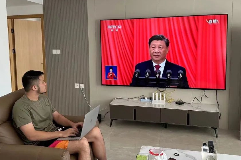 研究生第五党支部书记、2021级硕士研究生黄文朗:通过收看盛会,本人感受深刻,在以习近平同志为核心的党中央正确领导下,我国综合国力在科技、文化、国防、法制等领域取得巨大的提升,这大大提升了我们青年学生的民族自豪感。习近平总书记教导我们,青年强则国家强。这将鞭策我们不断努力学习,提升自我,在全面建成社会主义现代化强国这一伟大历史时期贡献自己的力量,实现自己的人生价值。