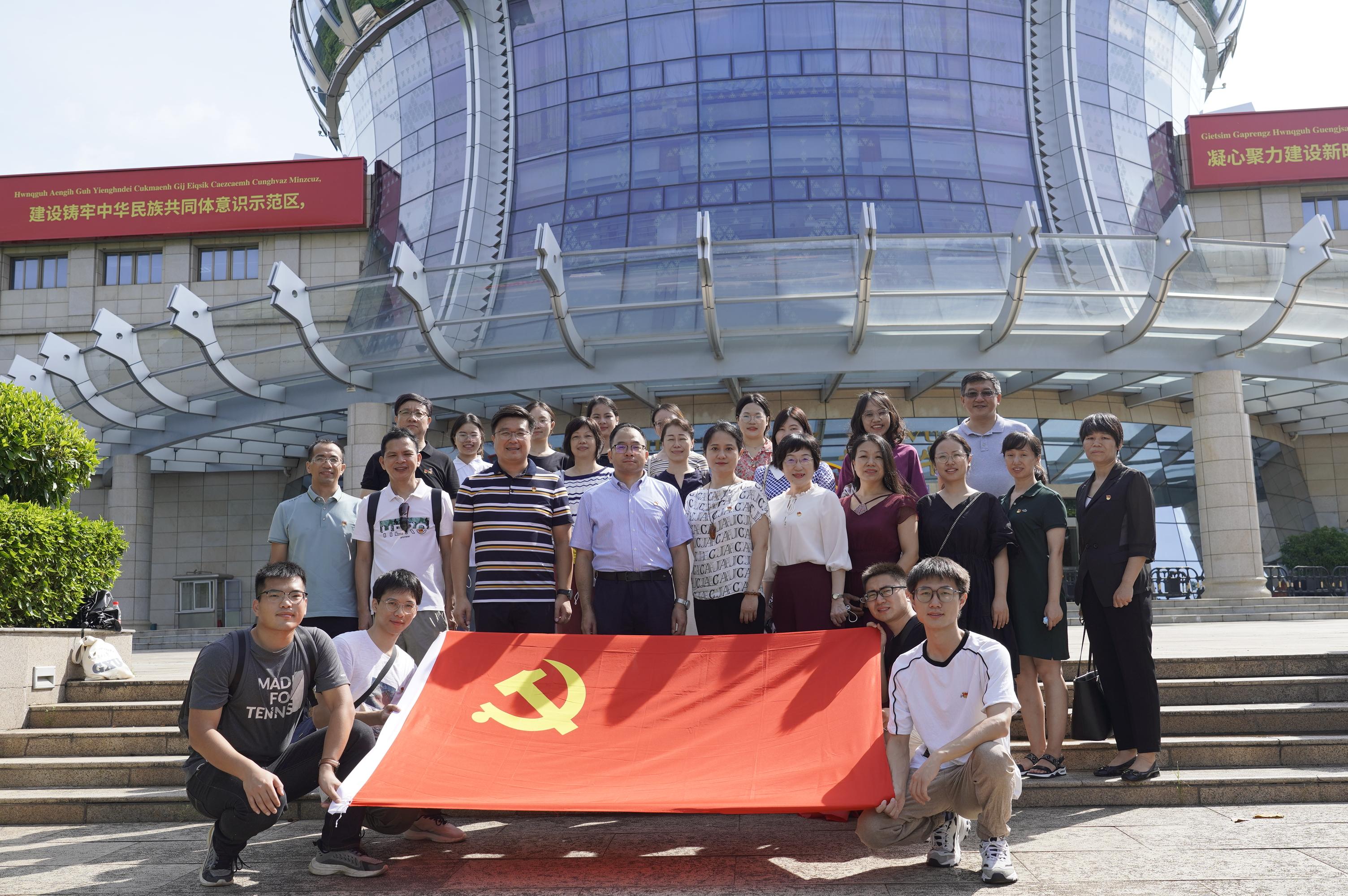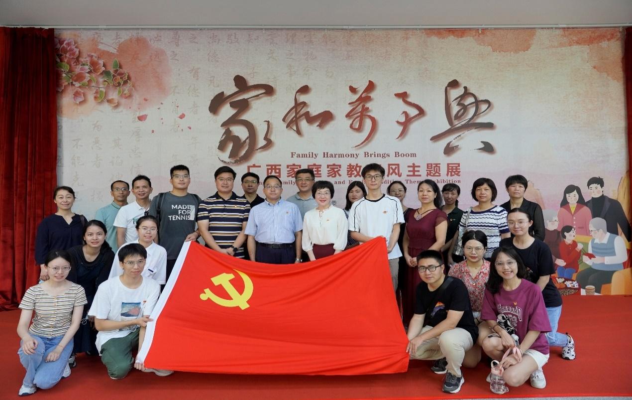 为深入学习贯彻落实习近平总书记对广西工作系列重要指示要求特别是视察广西“4·27”重要讲话精神,贯彻落实习近平总书记关于家风建设的重要论述,大力推进“清廉西大”“清廉学院”“清廉家庭”建设,7月19日上午,必赢官网教工行政党支部、教工信经党支部、博士生党支部及研究生第一党支部等20多名党员赴广西民族博物馆,沿着习近平总书记重要考察足迹,联合开展“加强民族团结 培育优良家风”主题党日活动。学院党委书记罗诚,党委副书记、纪委书记黄晋,党委委员、副院长申韬、廖东红一同参加了本次活动。