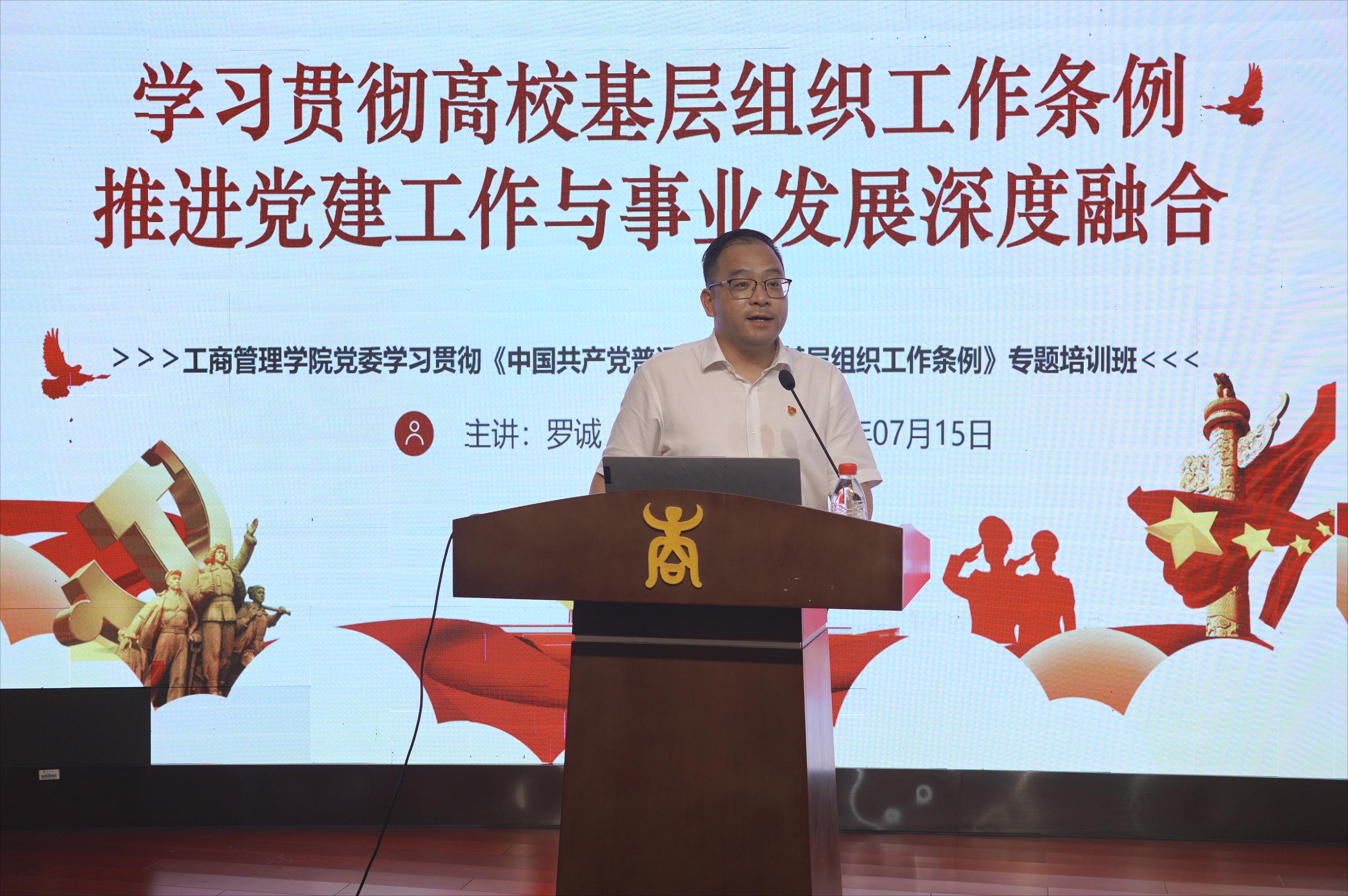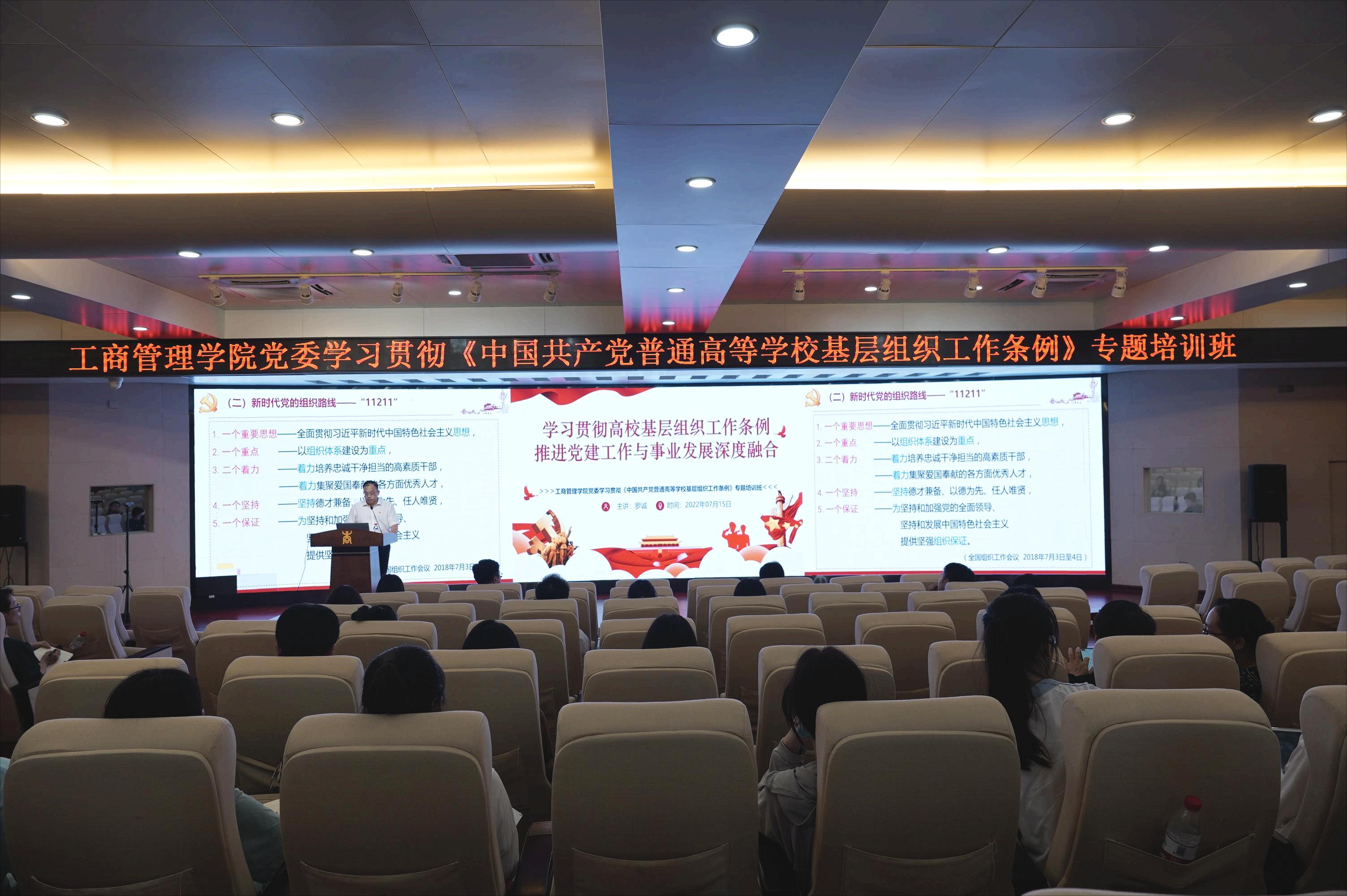 7月15日下午,必赢官网党委学习贯彻《中国共产党普通高等学校基层组织工作条例》(以下简称《条例》)专题培训班在128报告厅举办,院党委书记罗诚作题为《学习贯彻高校基层组织工作条例推进党建工作与事业发展深度融合》的专题辅导讲座。讲座由院党委副书记、纪委书记黄晋主持,学院全体教工党支部和学生党支部书记、副书记、委员及全体辅导员参加。