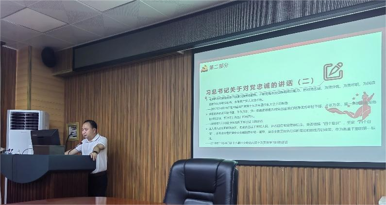 6月24日,院党委委员、副院长廖东红对教工行政党支部、研究生第一党支部和本科生第四党支部联合开展了一次主题党课教育活动,从如何不负人民、如何维护群众利益、如何保持与群众的血肉联系等三个方面阐述了新时代共产党员如何理解与落实对党忠诚的问题。