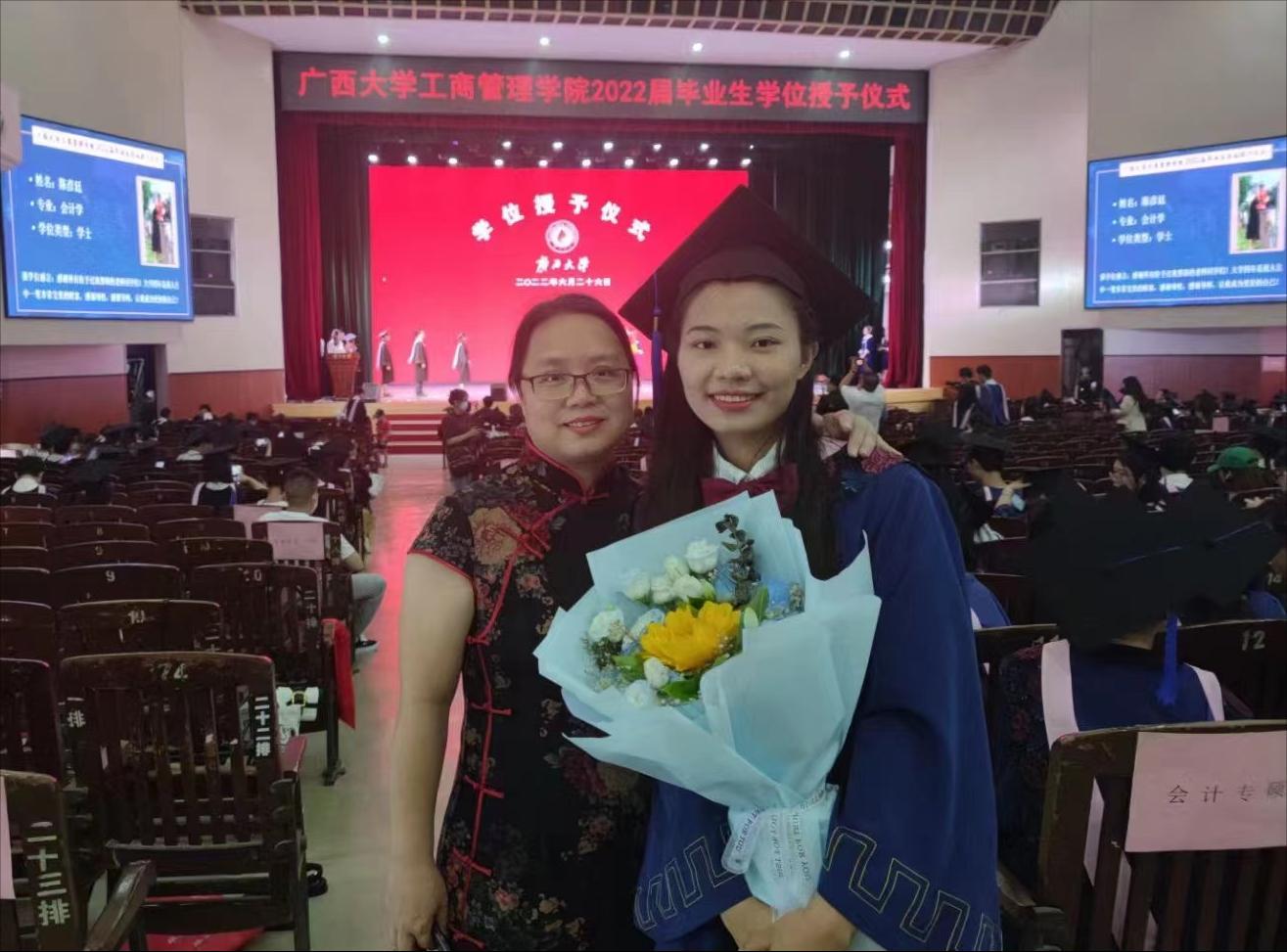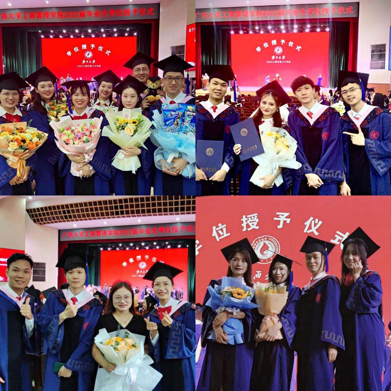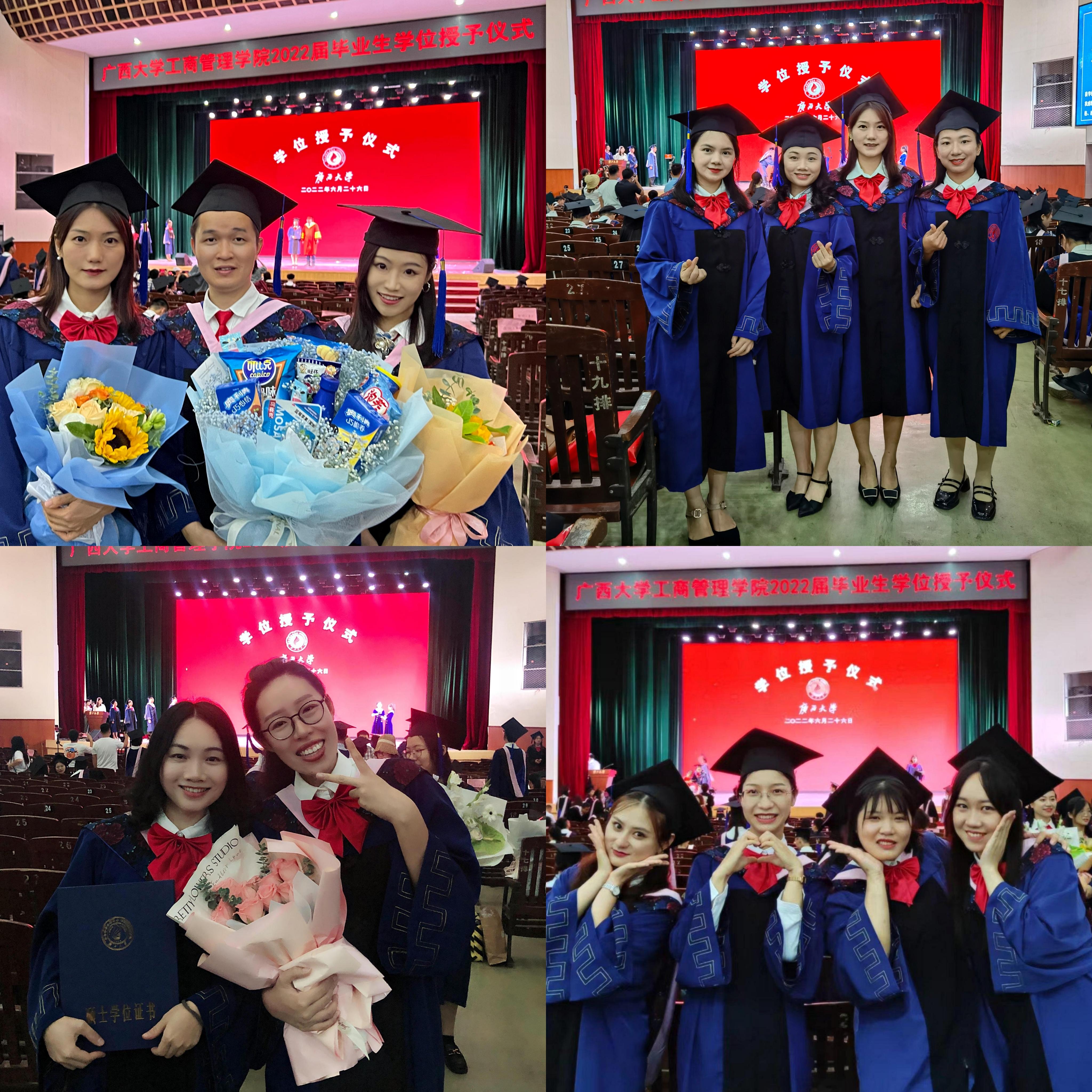 2022年6月26日,bwin必赢国际中国官方网站在学校大礼堂为2022届755人毕业生(其中研究生485人,本科生270人)举行庄严而隆重的毕业典礼暨学位授予仪式。院党委书记罗诚,院长朱帮助,院党委副书记黄晋,副院长朱少英、刘民坤、廖东红,教师代表叶映、韦铁、郭峦、唐妤、梁世昌出席仪式。仪式由院党委副书记黄晋主持。