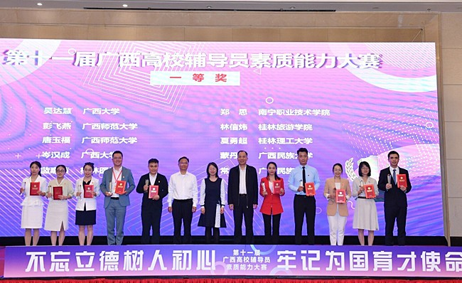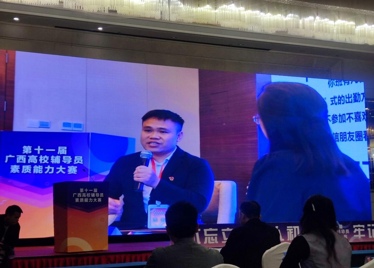 5月12至14日,由自治区教育厅主办,教育部高校思想政治工作队伍培训研修中心(广西师范大学)承办的第十一届广西高校辅导员素质能力大赛在桂林举办,共有来自全区各高校的84名专职辅导员参赛。经过三天激烈角逐,必赢官网辅导员岑汉成老师以总分第四名获得大赛一等奖,并在“基础知识”、“谈心谈话”两个比赛环节中获“最佳表现奖”。