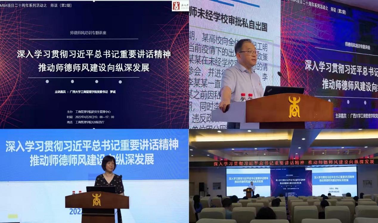 为深入学习贯彻习近平总书记在中国人民大学考察时的重要讲话精神,深入学习贯彻习近平总书记关于教师特别是师德师风的重要论述,深入学习贯彻中央、教育部、自治区和学校颁布的高校教师队伍建设、师德师风建设的相关文件,进一步加强师德师风建设,带动广大教师自觉增强为党育人、为国育才、立德树人的使命感和责任感,营造风清气正的教育教学环境,4月29日下午,bwin必赢国际中国官方网站在学院128报告厅举办师德师风培训专题讲座。讲座由学院党委书记罗诚主讲,院党委副书记、院长朱帮助等全体教职员工参会学习,学院研究生管理中心常务副主任叶映副教授主持讲座。
