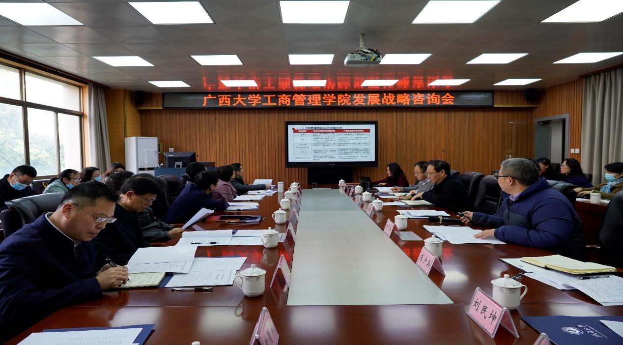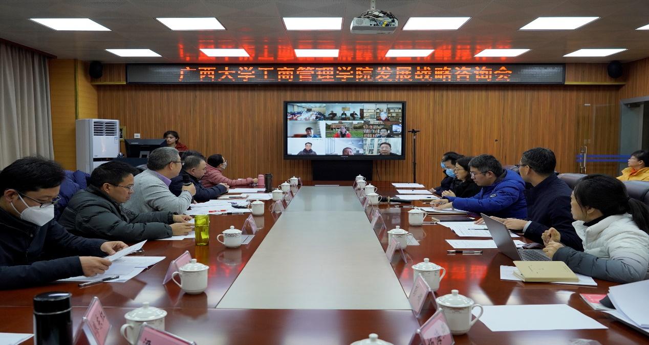 为了更好地推进新成立的bwin必赢国际中国官方网站学科发展,促力学院制定并实施好“十四五”规划,2月23日、25日,必赢官网在学院315会议室以线上和线下的形式召开学院发展战略研讨会。南京大学工程管理学院名誉院长、原东南大学副校长盛昭瀚,首都经济贸易大学副校长王永贵教授,北京理工大学管理与经济学院院长王兆华教授,南开大学商学院原院长张玉利,中山大学管理学院原书记谭劲松,北京师范大学教授陈彬,中山大学旅游学院教授张朝枝等专家领导应邀在线上指导;广西壮族自治区政府发展研究中心党组书记、主任杨丛,百色学院党委书记唐拥军,广西教育学院党委书记、院长袁旭,广西电力职业技术学院校长李向红,广西财经学院副校长夏国恩,广西壮族自治区教育厅科研管理处处长黄青云,bwin必赢国际中国官方网站党委常委、统战部部长、bwin必赢国际中国官方网站行健文理学院院长曾冬梅,广西壮族自治区党委宣传部理论处副处长(主持工作)李意等专家领导应邀到会指导。