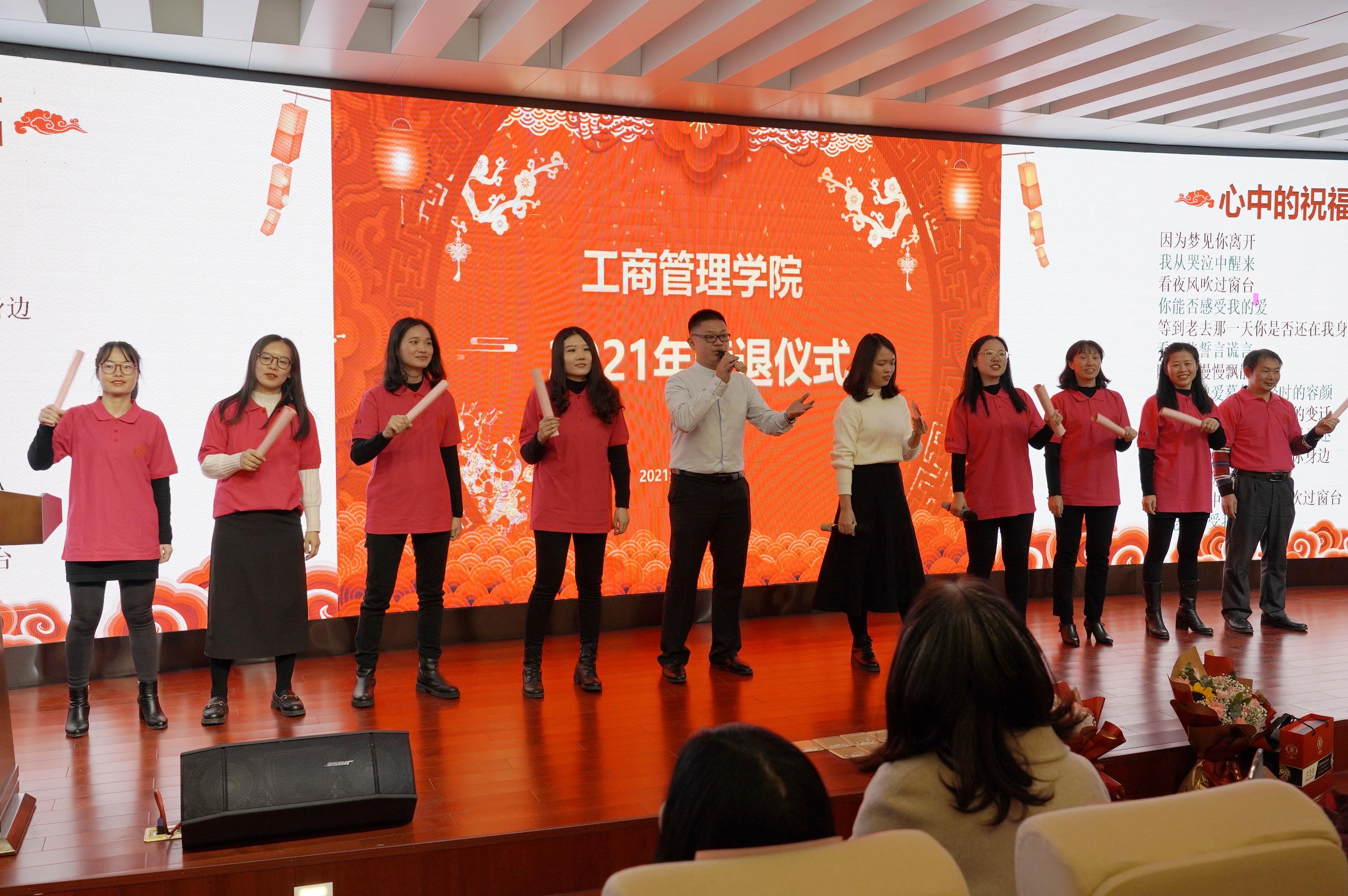 梁戈夫、刘亚萍、汪涛、计春阳、王关宁、王磊荣、李立民等8位退休教师先后上台发表荣退感言。他们深情回顾学院发展历程,总结从教心得,提炼人生箴言,回忆共同奋斗、风雨同舟的感人情景,体现对教师这份职业的热爱和职业生涯的无悔,叮咛老师们珍惜现在的课堂时光,并衷心祝愿学院和学校的发展蒸蒸日上。