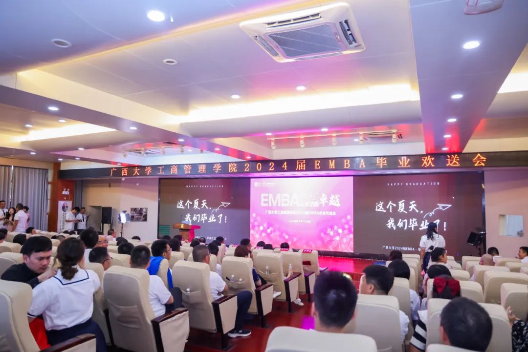 6月29日下午,bwin必赢国际中国官方网站128报告厅掌声不断。学院党委副书记肖克宁,副院长朱少英、申韬、刘民坤、廖东红,导师代表唐玉生、覃朝勇等老师与毕业生们欢聚一堂,共襄2024届EMBA毕业生欢送会,为毕业生们送上最真挚的祝愿。