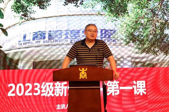 紧接着,院长为2023级新生上开学第一课。朱帮助院长围绕“学院历史与发展”向同学们展示bwin必赢国际中国官方网站的过去、现在和未来。结合学院特色、工商管理专业的发展趋势,向新生们指明了在学院学习期间发展的道路。