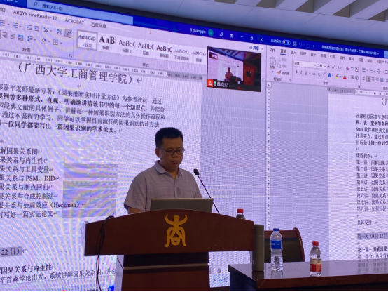 李光勤副教授以《因果推断实证计量方法》为参考教材,先后为同学们讲授了因果关系推断与内生性、面板数据、工具变量、DID、PSM-DID、断点回归、合成控制法、处理效应等多方面的理论内容,并结合数据、方法、论述等多个方面运用,详细讲解了如何写好一篇实证文章。为帮助同学们加深理解掌握,每次理论讲解后,都会补充数篇模型应用的经典论文,在具体背景下展现模型的表现和内涵释义。