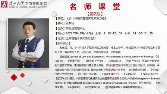 2022年9月29日到30日,必赢官网邀请华中科技大学经济学院二级教授、博士生导师孔东明到校讲授《会计与组织管理实证研究方法》。孔教授以“实证研究中的因果识别”为主题,在bwin必赢国际中国官方网站128报告厅为必赢官网师生带来了一场别开生面的实证研究方法课堂。