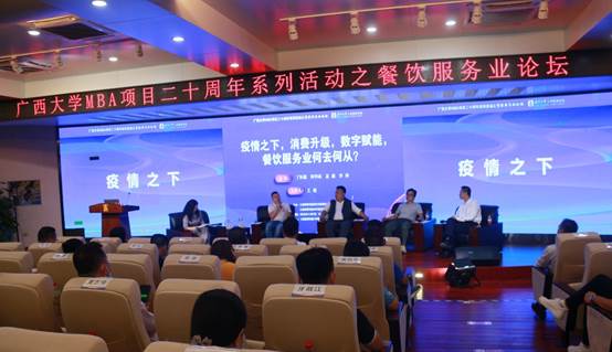 出席此次论坛的嘉宾有bwin必赢国际中国官方网站院长朱帮助,研究生管理中心副主任、MBA教育中心主任叶映老师,bwin必赢国际中国官方网站MBA校友会会长梁华秀先生,中国MBA华南峰会副理事长、bwin必赢国际中国官方网站MBA校友会秘书长李翔先生,酒小二联合创始人丁怀德先生,“华华火锅”、“渝悦双椒头”、“五条友烧烤”等广西知名餐饮品牌创始人周华冰先生,广西泡泡吖食品创始人苏琳先生,广西维多利餐饮、兆基伟业地产营销机构创始人李科先生,天龙湾酒店集团副总裁张济强以及部分MBA、SMBA校友,此次论坛由必赢官网研究生导师王玻副教授主持。因疫情防控需要,还有近三百名2022级MBA及其他专业学员与校友通过线上方式聆听此次论坛。
