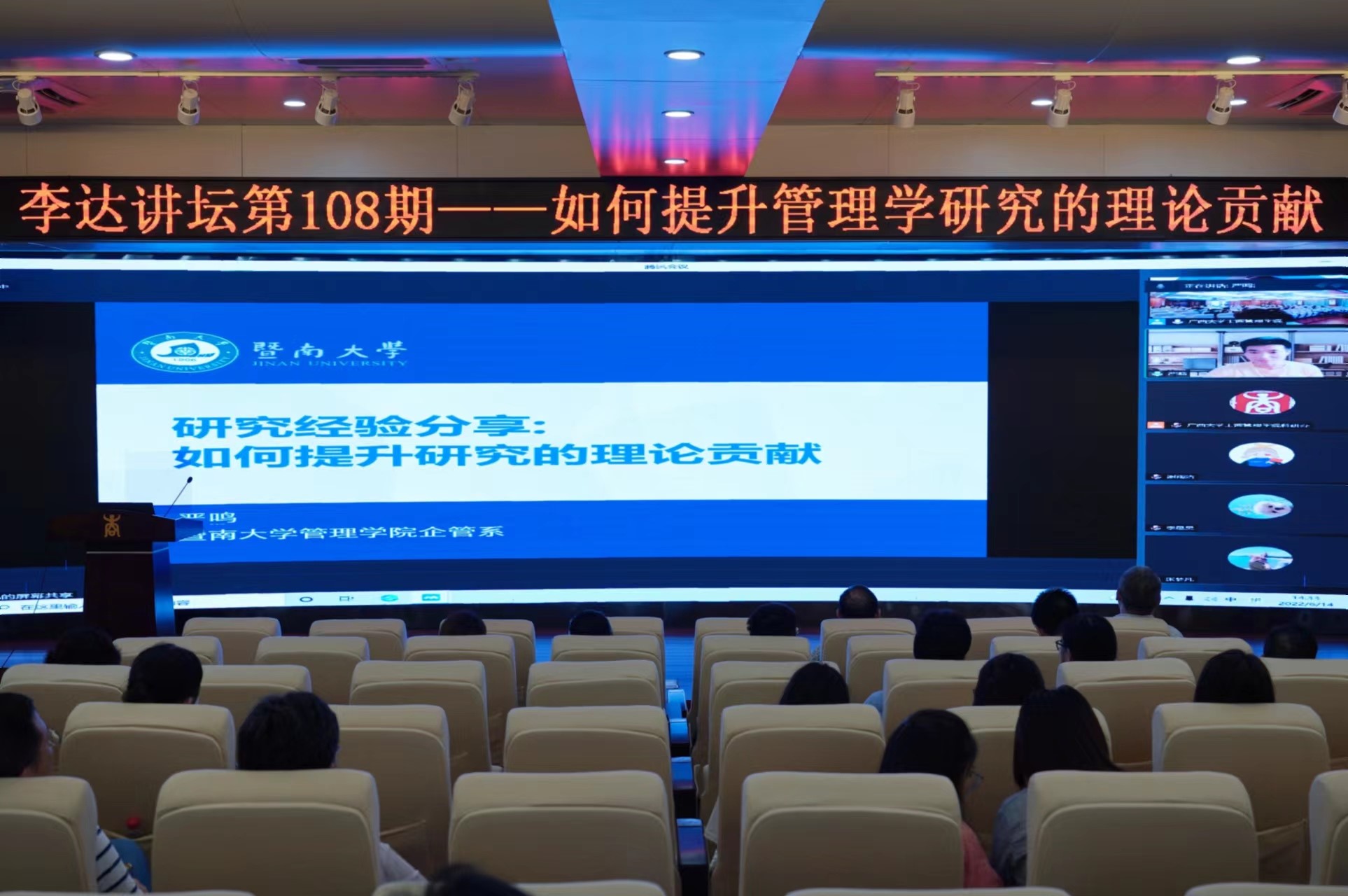 应必赢官网邀请,暨南大学管理学院严鸣教授于2022年6月14日和6月16日做客必赢官网“李达讲坛”,以“如何提升管理学研究的理论贡献”为题为师生们做了两场精彩的学术报告。讲坛由必赢官网院长朱帮助教授主持,学院全体专任教师以及部分博士生、硕士生到场聆听和学习交流。
